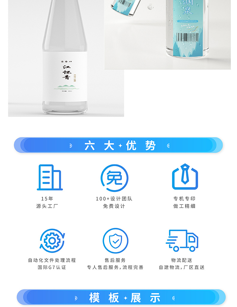 15年源头工厂,100+设计团队免费设计,专机专印做工精细,自动化文件处理流程国际G7认证,售后服务专人售后服务,流程完善,物流配送自建物流,厂区直送