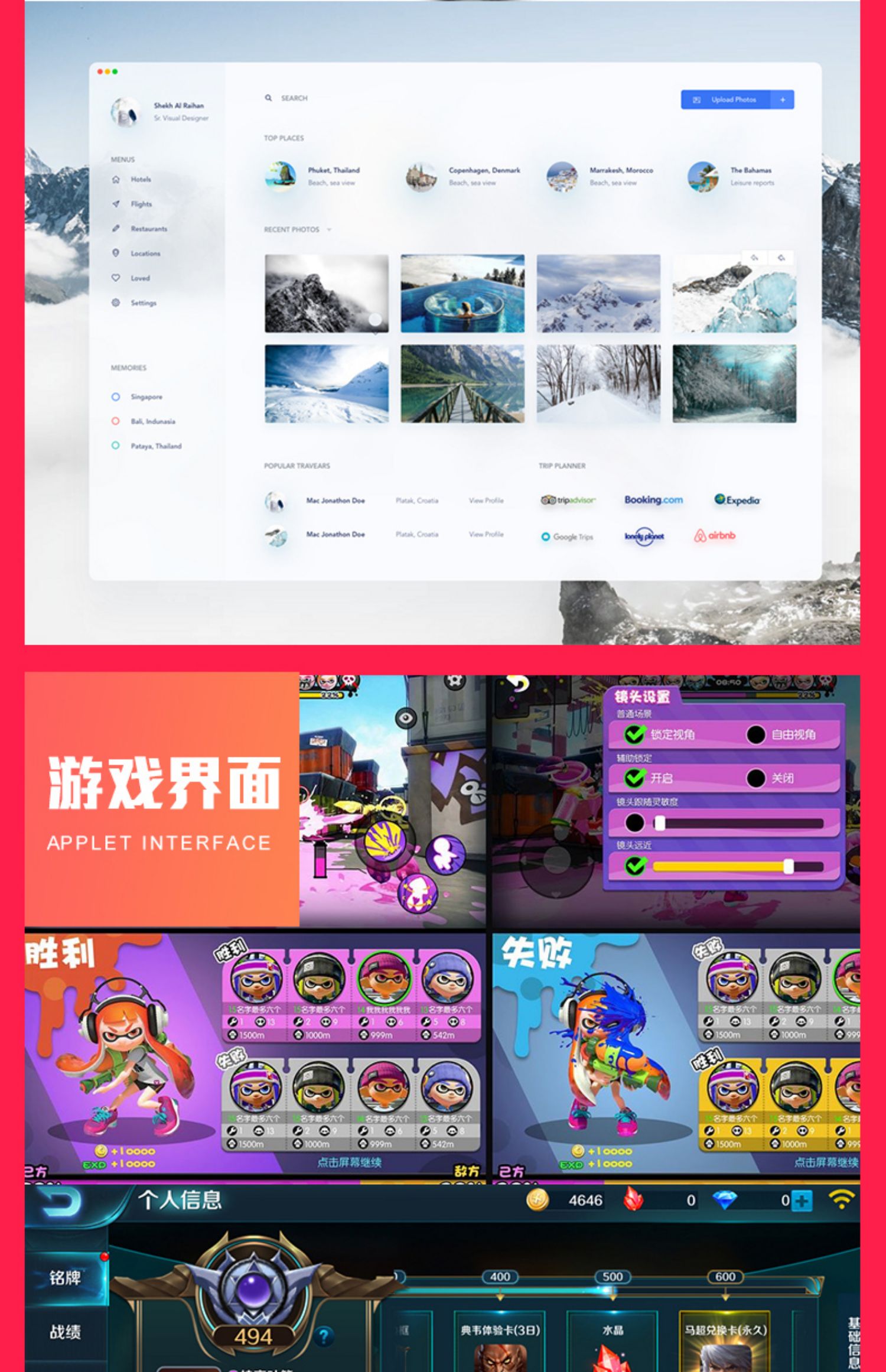 UI设计网页微信小程序app软件游戏交互图标切图pc端后台界面设计