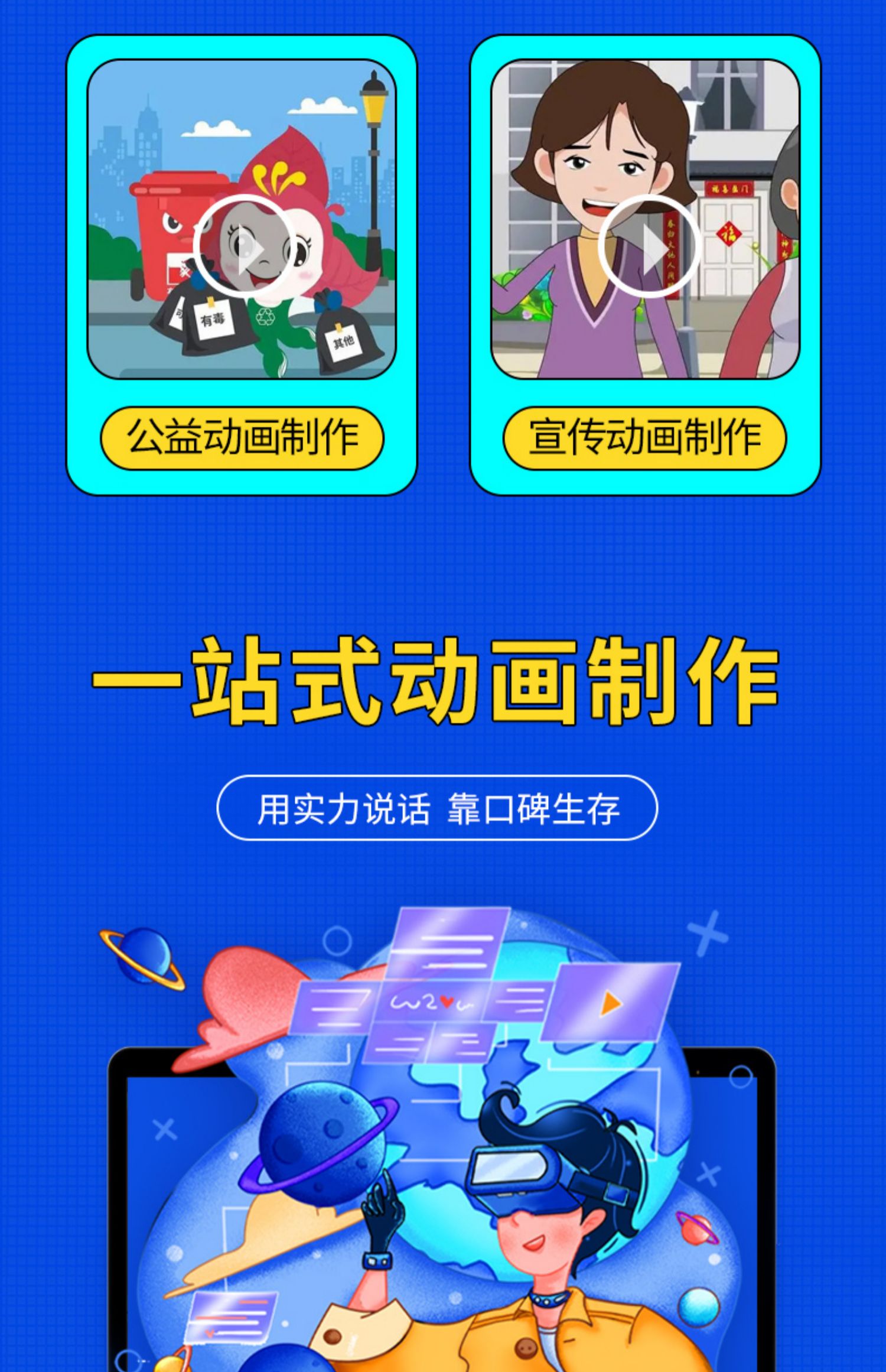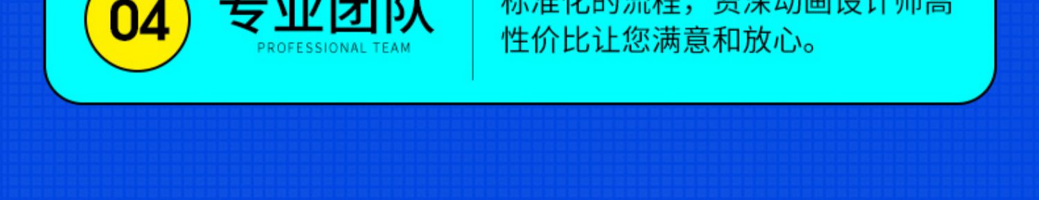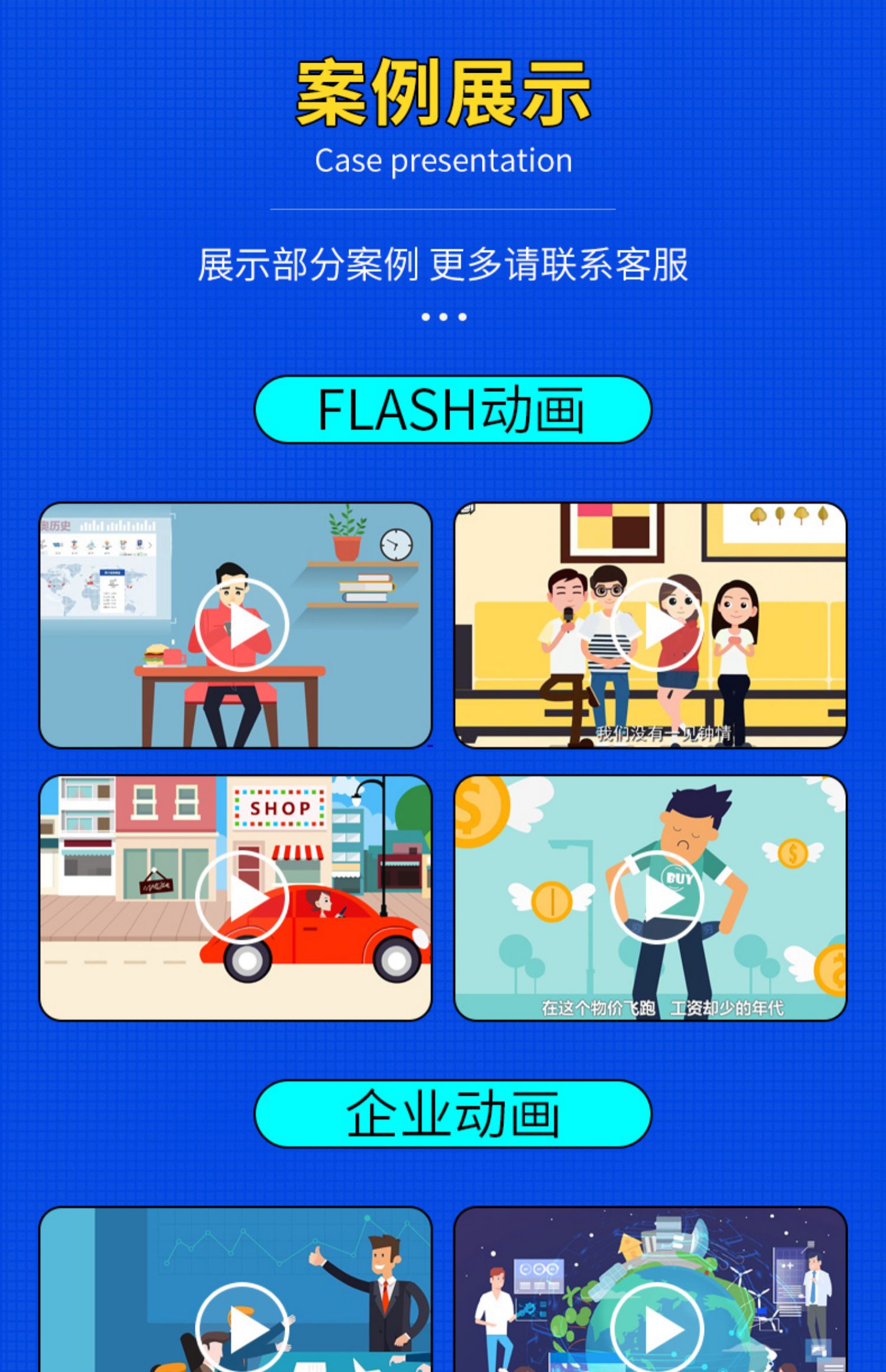 制作流程: 1:咨询客服,沟通需求 2:签订合同,出小样片 3:制作完成,修改细节 4:交付视频,支付尾款 5:源文件保留三个月,后续需要修改细节可继续修改 小修改免费改到满意为止。建立项目制作群,策划师,场景师,动画师均在项目群里一对一沟通,高效率,速回复。