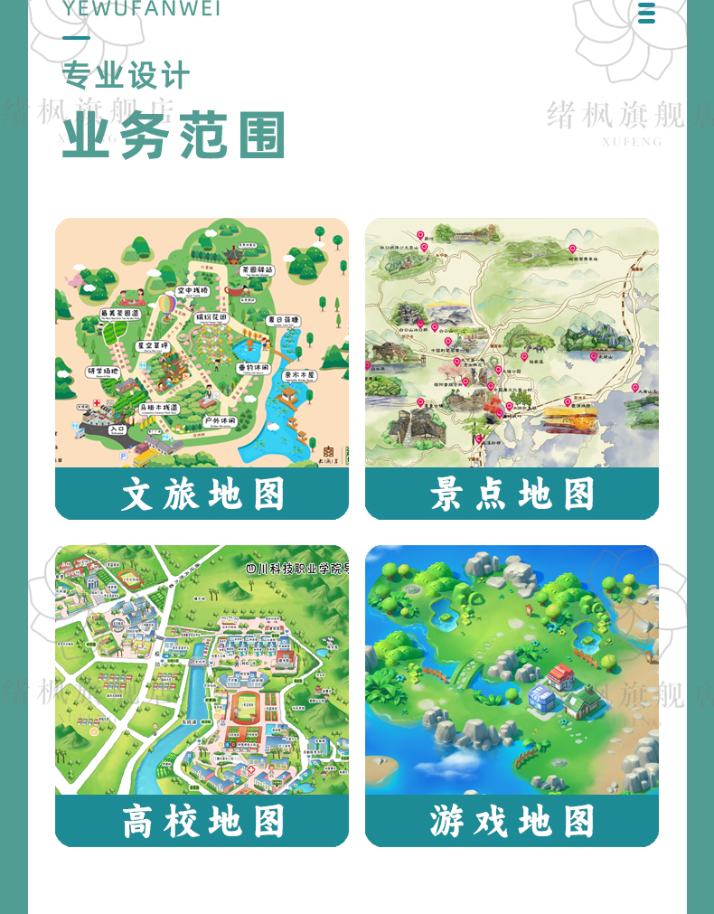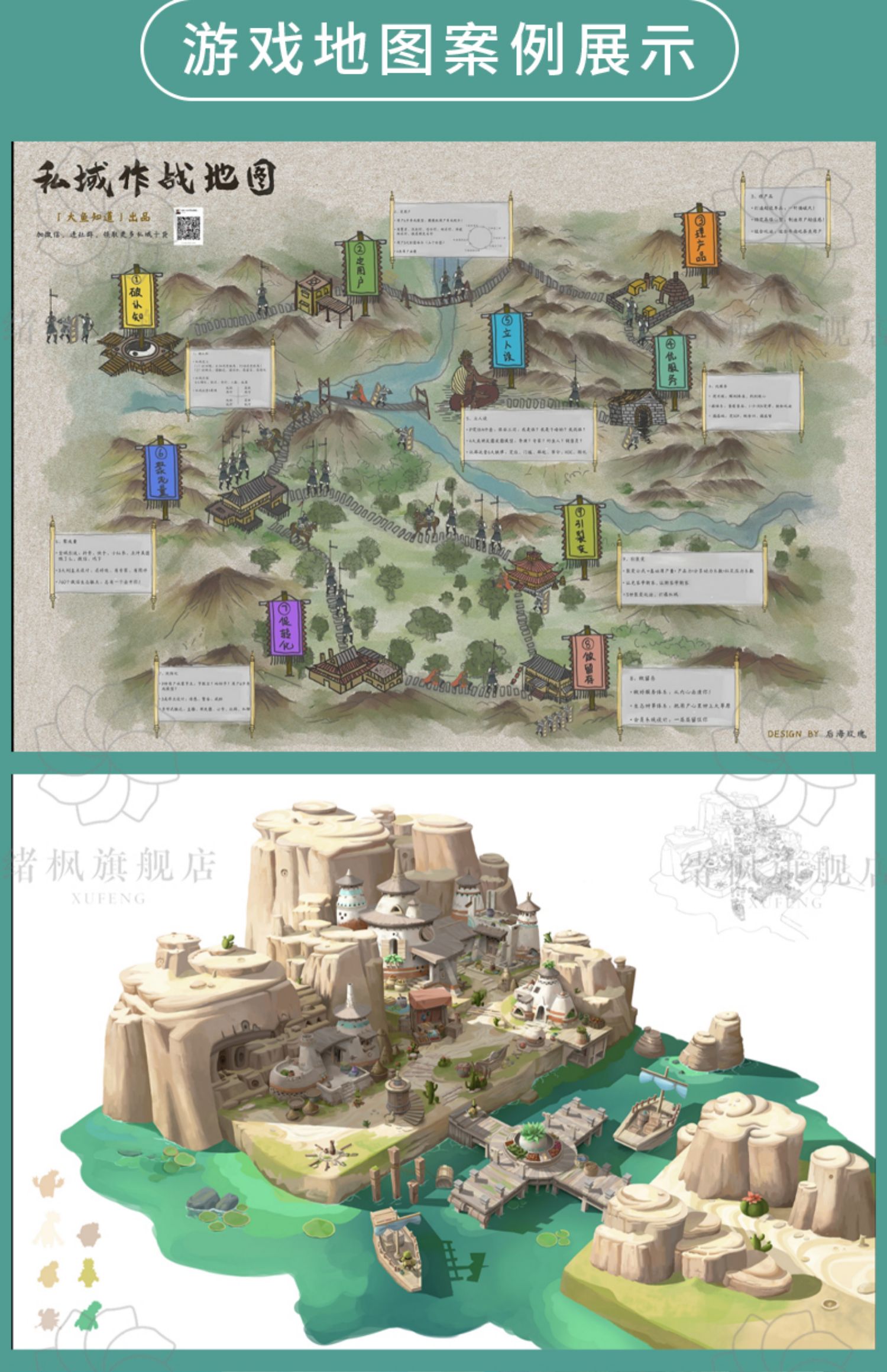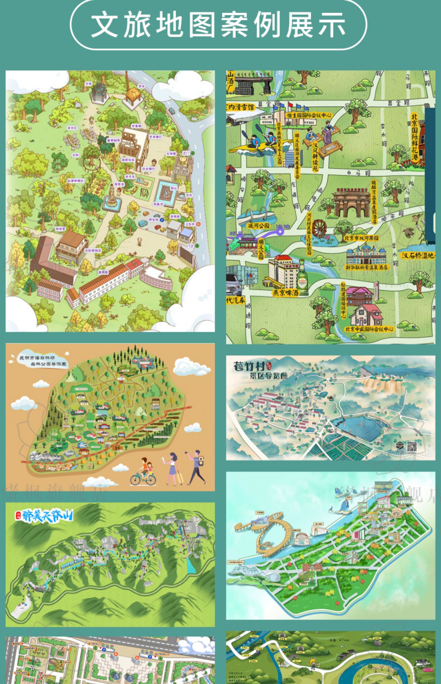 代画卡通动漫画校园地标建筑手绘地图定制乡村旅游景区导览图设计