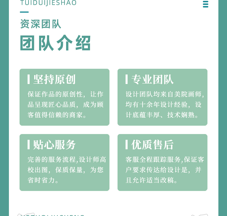 设计团队均来自美院画师均有十余年设计经验,设计底蕴丰厚、技术娴熟