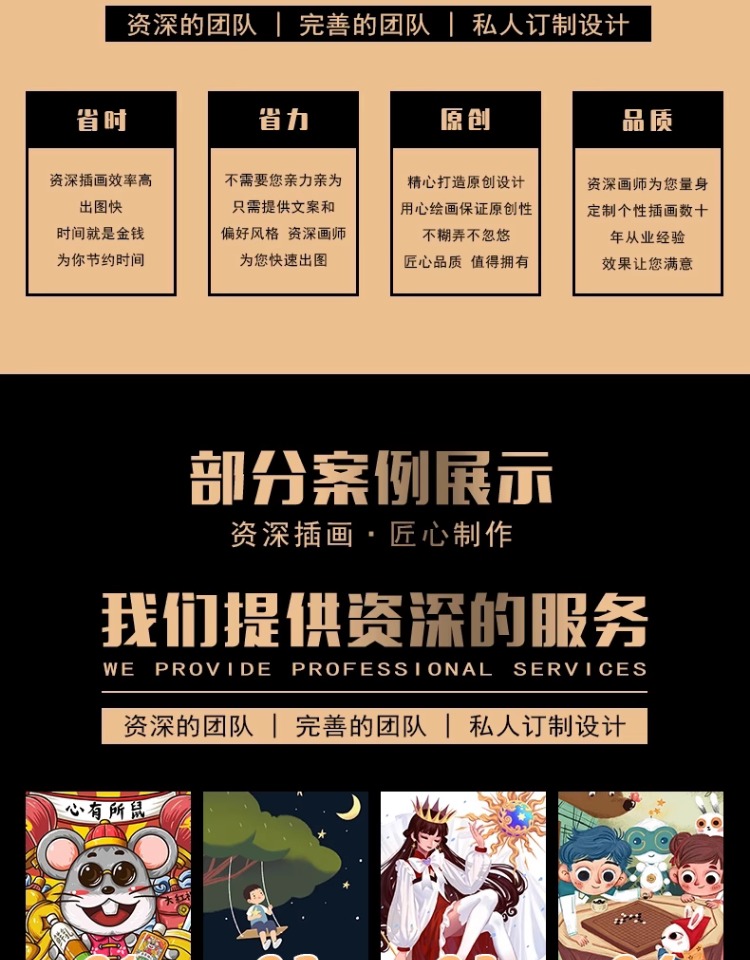 资深插画效率高,不需要您亲力亲为,精心打造原创设计,资深画师为您量身定制